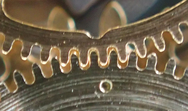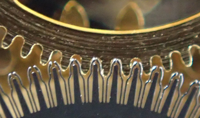 バックラッシュが生じると、クロノグラフ針が細かく震えるように進んでしまいます。