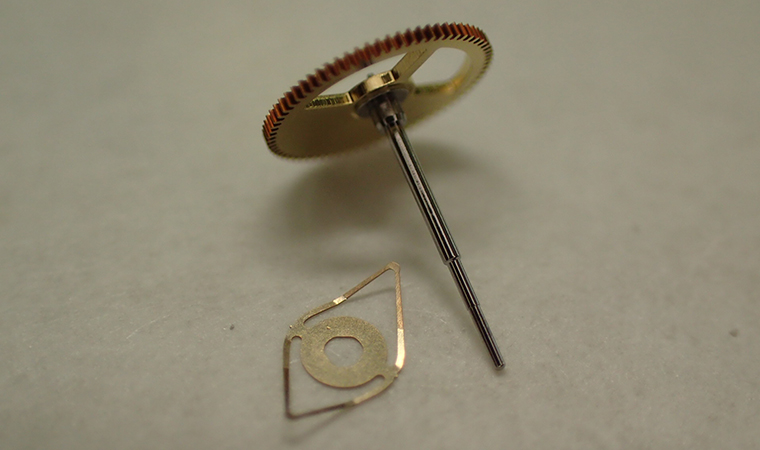 ムーブメントCal.4130に搭載されていた、従来のクロノランナーとテンションスプリングです。
