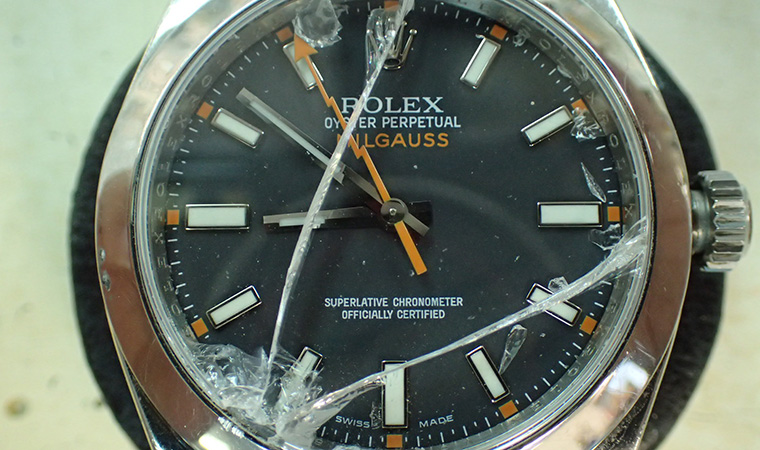 ミルガウスはクリスタル破損で修理に持ち込まれることが多い印象です。