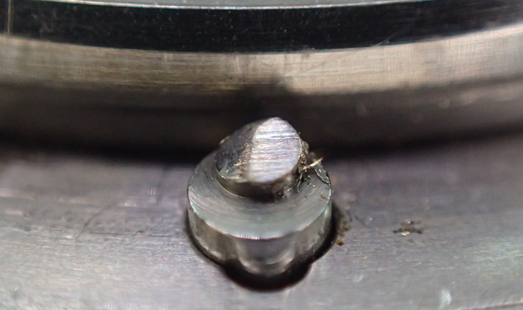 ベゼルを取り外した7時位置部品の先端が削れているのが確認できます。