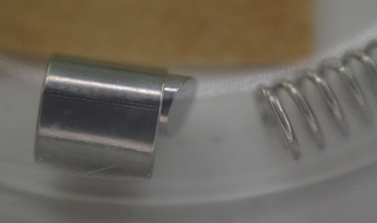バネとボールの付いた部品がスムーズなベゼル回転を実現しています。