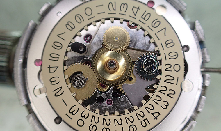 4針モデルの為、3針のムーブメントに比べて部品点数が多くなっています。