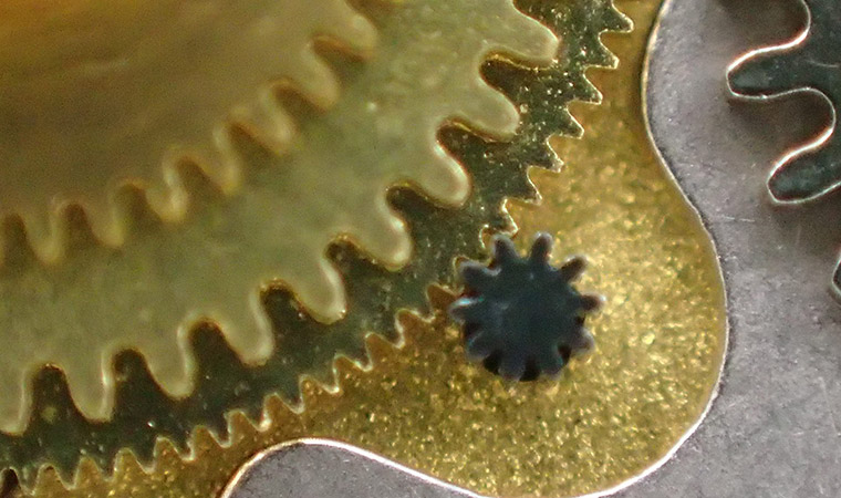 針がズレる原因は、筒車の歯が小さく欠けたためでした。