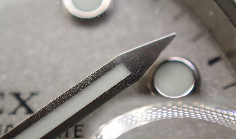 クリスタル風防の内側に水滴やくもりを見つけた際には、早急にメンテナンスを行う必要があります。その状態で放っておくと、ダイヤルにシミや腐食が生じてしまうことはもちろん、ムーブメントにもサビが発生してしまい、大量の部品交換が必要になります。症状が確認でき次第、最寄りのクォーク店舗までお持ち込みください。