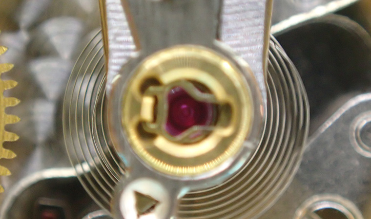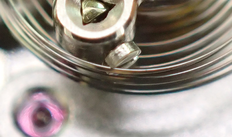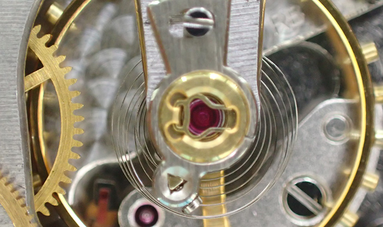 引っかかっていたヒゲゼンマイを戻し、微調整を行ないました。