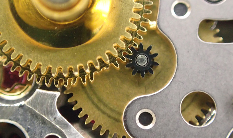 歯車が正確に嚙み合っていない状態で無理やり動かしたり、過度にリューズを回したりしてしまうと内部パーツを酷使し痛める原因となります。機械式時計の内部には、小さな部品が多く詰まっていますので、丁寧な操作を心掛けましょう。また、普段とは異なる違和感がある際は、お近くのクォーク店舗までご相談ください。