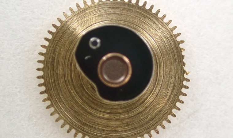 カレンダー送り車の歯が欠けたことで、日付が変わらなくなってしまいました。