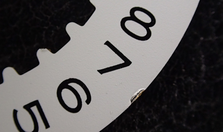 反時計回りに針を回してしまうと、カレンダー車がロックした状態になってしまう時間帯が存在します。ロックされた状態でカレンダー操作を行ってしまうと、カレンダー車に特有のキズがつきます。