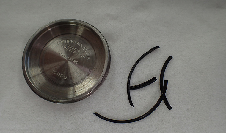 前回のメンテナンスは海外業者により行われたことが確認できました。しかし、なぜかチューブパッキンが交換されておらず、チューブパッキンは石のように硬化していました。これでは防水性が期待できません。