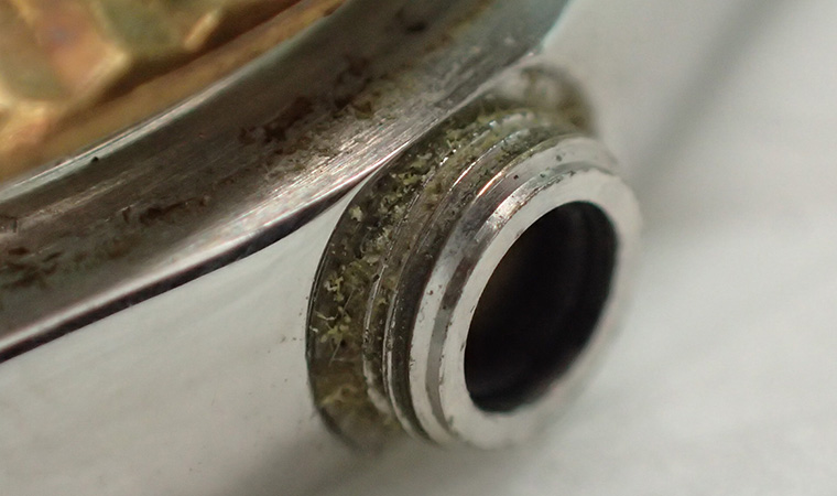 メンテナンス履歴が不明な様子のヴィンテージロレックスを分解すると、高い割合でケースにサビが見られます。今回ご紹介するデイトジャストにもサビが発生しておりました。