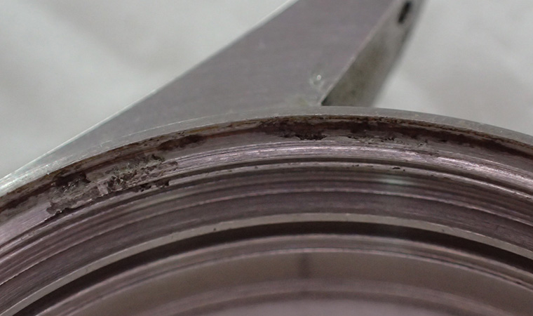 サビを落とすと、摩耗により段が出来ていることが確認できました。このようになってしまうと交換が必要になります。