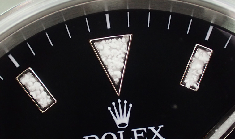 水は機械式時計にとって大敵です。ダイヤルだけでなく、機械部分も容赦なく腐食させます。リューズの締め忘れはもちろん、メンテナンス不足によるパッキンの劣化にも注意が必要です。なお、ヴィンテージモデルはさらにクリスタル自体の劣化や、ステンレス素材の違いによる腐食も考慮しなくてはなりません。水入りは時間が経つほど症状が重くなりますので、少しでも症状が確認出来た際は最寄りのクォーク店舗までご相談ください。