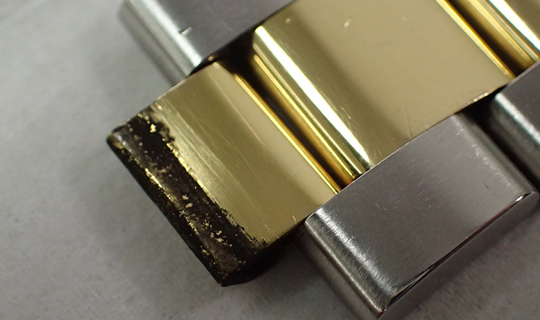 金焼けと呼ばれる、金の経年による変色を大切にされている方も多いため、今回は汚れ落としのみとしました。防水検査を実施し、外装メンテナンスは完了となります。約40年前に製造された腕時計を問題なく普段使いできるのは、定期的なメンテナンスをしっかり行っているからに他なりません。皆様も定期的なメンテナンスを怠らないよう気を付けましょう。