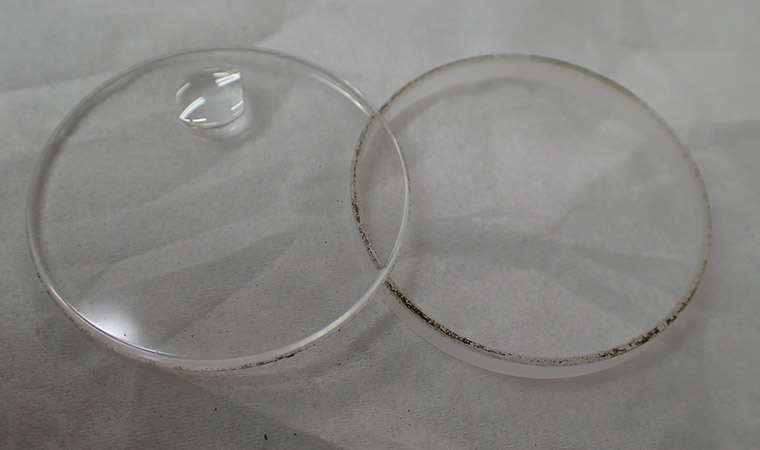 クリスタルとパッキンの間も汚れが染み込むように入っていました。