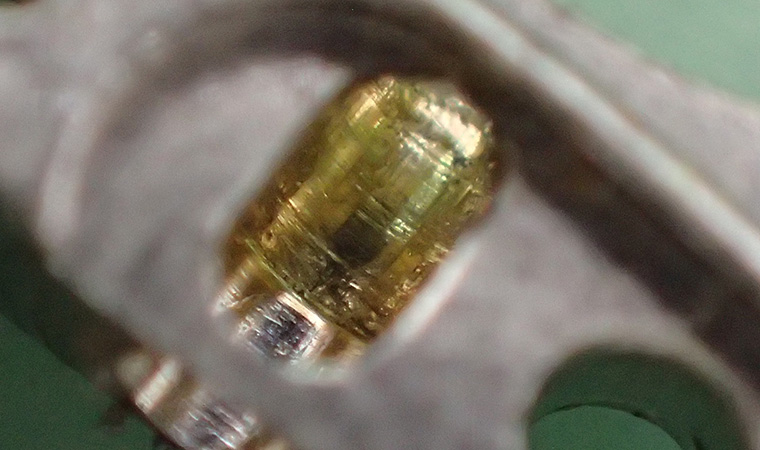 修理作業でムーブメントをケースから取り出すために巻真を抜くとスムーズに抜けず、引っ掛かりを感じることがあります。