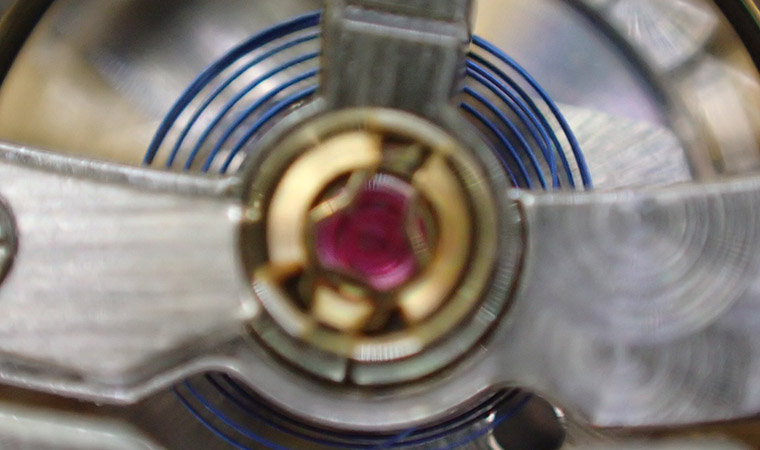 そして、進みの原因はテンプのヒゲゼンマイが絡んでしまったことによるものでした。このようになってしまうと、正確に時を刻むことはできません。