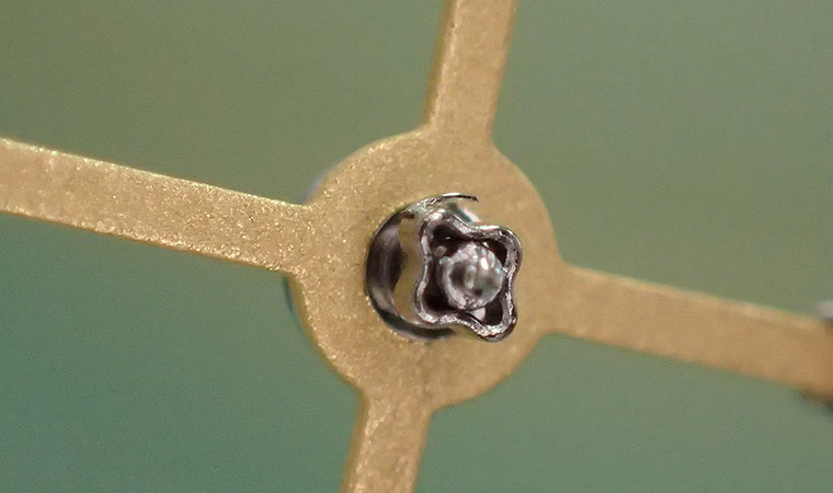 外してみると、やはりヒゲゼンマイが切れていました。こちらは交換対応となります。