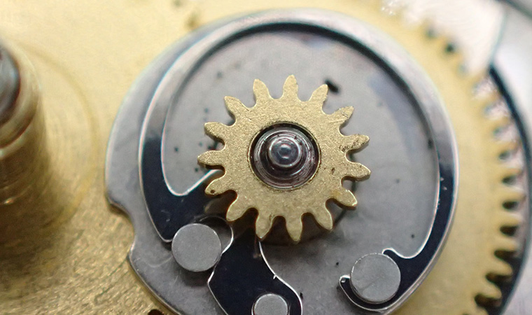 カレンダーの早送り機能がないムーブメントを操作する場合、日付を合わせる際に短針早送り操作を素早く行ってしまいがちです。そうなると上記のバネはものすごいスピードで動くことになります。カレンダーを合わせる際は、内部の構造を意識して、冷静に操作していただくことで部品の寿命を延ばすことができると思います。今回の異常にかかわらず、普段と異なる使用感がある際は、お近くのクォークショップまでお気軽にご相談ください。