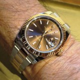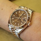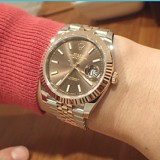 DATEJUSTⅡ(Ref.116333)からの買替で購入しました。イエローゴールドに比べて渋い印象で派手過ぎず腕への収まりが良く気に入ってます!