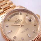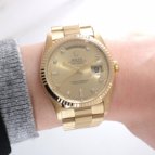 デイトジャストのコンビを使っていましたが、より良い時計が欲しいと思い、デイデイト イエローゴールド金無垢モデルの10Pダイヤ文字盤に買替えました!