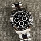 先日ついに購入!やっぱりセラミックベゼルのデイトナかっこいいです。白のデイトジャストを持っていたので、デイトナは黒を選択。セラミックとダイヤルが同じ黒でしまって見えて、ほんとにかっこいい。買って後悔はないモデルですね