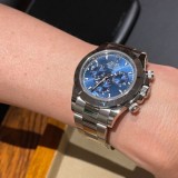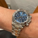 ステンレスモデルのデイトナは所有しており、ホワイトゴールドのデイトナがどうしても欲しかったです。青文字盤が廃番になった事を知り、購入に前向きになりました。