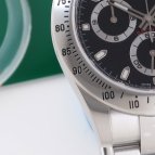 精巧な印象のブラックダイヤルは、インダイヤルのフレームとのコントラストによりデイトナのメカニカルなデザインを際立たせ、常にトップを争う圧倒的な人気を誇っている。