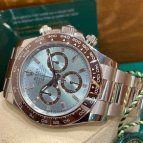 デイトナで初となるプラチナ仕様のRef.116506は、チェスナットブラウンという絶妙なカラーリングのセラミック製タキメーターベゼルを搭載し注目を集めた。また、プラチナモデル固有のステイタス性の高いアイスブルーダイヤルが採用されている。ロレックススポーツ最高峰モデルと最高級貴金属プラチナの組み合わせは、まさにデイトナ50周年に相応しい気品溢れるモデルとなっている。
