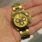 ロレックスらしさがあり、ステイタスも感じられる金無垢モデルを探していました。シャンパンダイヤルもブレスと相性が良く、気に入っています。