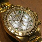 大変希少なバケットダイヤベゼルのエル・プリメロのイエローゴールドモデル。ダイヤルにはどこから見てもまばゆい輝きを放つパヴェダイヤに加え、8Pのエメラルドが用いられたゴージャスなデザイン。スペシャル&コレクションピースと言えるモデルでございます。ケースの痩せ感もブレスレットの伸びも少なく、コンディションも良好です。 FF103/78398 ※こちらの商品はメンテナンス後のお渡しとなります。