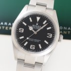 下取りで売却した【EXPLORER I Ref.214270】を購入したタイミングでは希望サイズ36ミリが新品展開されておらず、このタイミングで思い切って36ミリサイズRef.124270への買い替えを決断しました!艶のある…
