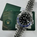 DAYTONAもカッコイイなと思いつつ、もともとGMT-MASTER II 126720VTNRが気になっていたので試着させてもらい、カラーバリエーションが豊富なので若干揺さぶられましたがBLNRのジュビリーブレスが一番気…