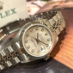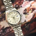 長く使える一生モノの時計として、ロレックスのデイトジャストに決めました。ダイヤル選びも色やダイヤの有無を検討しましたが、高級感があり、将来的な好みも見越してワンランク上のシルバー10Pダイヤ文…