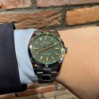 ミルガウスは、磁気に対する耐性を徹底的に追求した「現代の生活環境に最も適した実用時計」である。アニバーサリーモデルとして発表されたRef.116400GVは、ロレックスのコーポレートカラーとなるグリーンが採用された、グリーンサファイアクリスタル仕様が最大の特徴。このグリーンサファイアクリスタルが、一般的なサファイアクリスタルと異なる点は二つ。