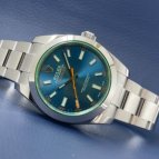 ミルガウスは、磁気に対する耐性を徹底的に追求した「現代の生活環境に最も適した実用時計」である。アニバーサリーモデルとして発表されたRef.116400GVは、ロレックスのコーポレートカラーとなるグリーンが採用された、グリーンサファイアクリスタル仕様が最大の特徴。このグリーンサファイアクリスタルが、一般的なサファイアクリスタルと異なる点は二つ。