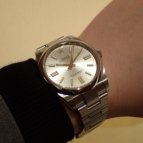 シルバーのオイスターパーペチュアルを探していて、今回クォークさんに事前に連絡し、36mmと41mmサイズの2本を取り寄せてもらいました。