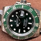 この時計を雑誌で見たときにベゼルと文字盤にグリーンを使ってるから派手なのかなと思いましたが、実際に試着してみると意外に落ち着いた雰囲気でした。Ref.116610LNを購入する予定が、その場で気に入ってしまい即購入!!