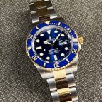 途中、GMT-MASTERIIと悩みましたが、引き込まれるブルーに飲み込まれサブマリーナーに決めました。