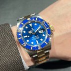 途中、GMT-MASTERIIと悩みましたが、引き込まれるブルーに飲み込まれサブマリーナーに決めました。