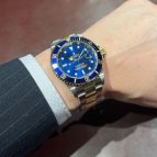 偶然、インスタで青サブが映るところを見て、気になり、来店してみました。やはり実物は美しく、一目惚れをして購入を決意しました。当初は他のモデルも視野に入れていましたが、青サブで正解でした!