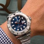 ずっと青文字盤の時計を探していました。偶然店頭でヨットマスターを案内して頂き、運命を感じ、購入を決意しました。個人的にはアクセントになる赤針が気に入っています。