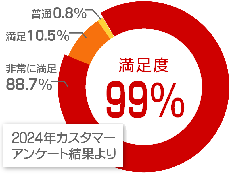 今後も皆様の喜びに寄り添うおもてなしとともに、お客様満足度100%(非常に満足+満足)を目指してまいります。