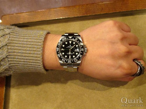 D様 この度はクォーク仙台店をご利用くださいまして誠にありがとうございます。また、お褒めのお言葉をちょうだいしまして大変恐縮でございます。以前よりご検討されていたGMTマスターII、おめでとうございます! お話の通りグリーンの針がとても良いアクセントになっていて、腕元をさらに強調してくれる素晴らしいデザインでございます。また、3ヶ国のタイムゾーンを確認出来る機能は、きっとこれから存分に活躍してくれることと存じます。今後も末長いお付き合いの程、宜しくお願い致します。 クォーク仙台店 古賀