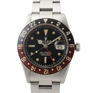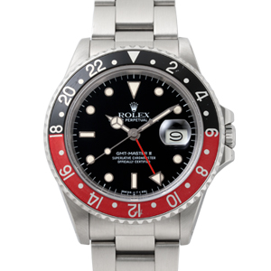 国際線パイロット向けに開発されたGMTマスターは、異なるタイムゾーンを把握可能なため、現在ではビジネスシーンで愛用される方が多いモデルです。その人気は、セラミックベゼル採用のGMTマスターII の登場を機に一気に高まり、現在では生産終了モデルからGMTマスターI も含めたGMTマスターシリーズ全体の相場を押し上げています。