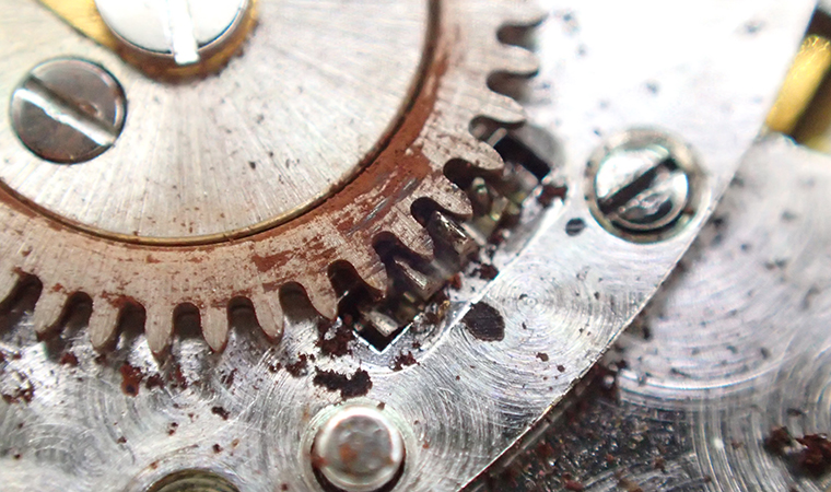 いくら名機と呼ばれるCal.1570でも、メンテナンスを怠ればオイル切れを起こし、サビが発生することで各パーツの摩耗を進行させてしまいます。
