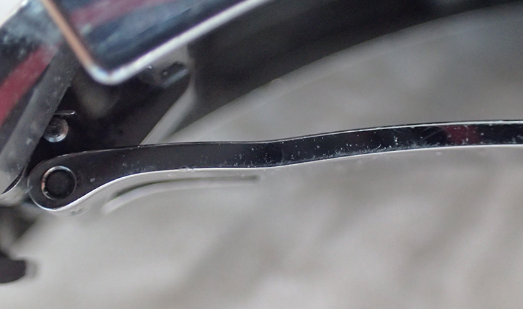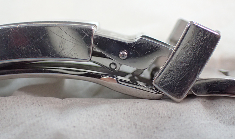今回のように大きく変形してしまうと、バックル本体の交換が必要になる場合もあります。しかし、非常に高額になってしまいますので、可能な限り修正で対応しました。
