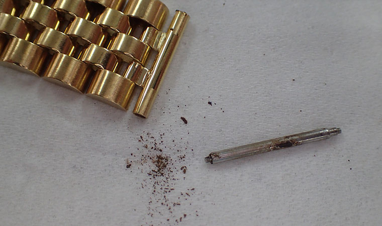 ブレスレットを新品に交換できれば最良なのですが、とても高額になってしまいますので、補修を行います。