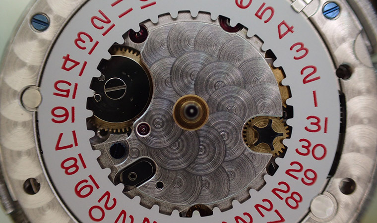 ダイヤルを外して、カレンダー車の送り部分をチェックします。