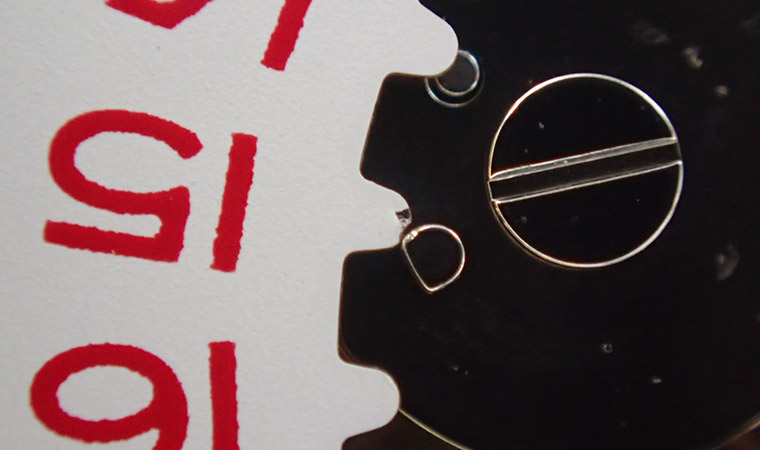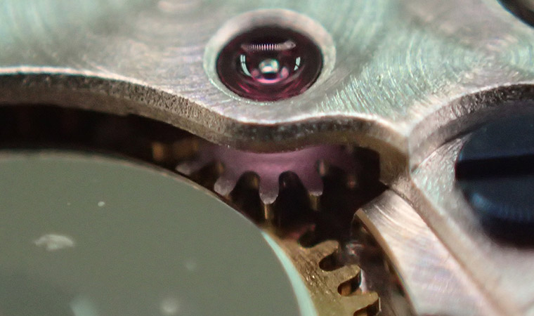 今回は、中間車のカシメが緩んでしまいましたが、他にも操作系の歯車の歯が欠けてしまうこともあります。時刻合わせの際に逆回転させないこと、午後8時から午前4時の間はカレンダーの早送り操作をしないことで故障を未然に防ぐことができますので、リューズ操作時には十分に注意していただきたいです。