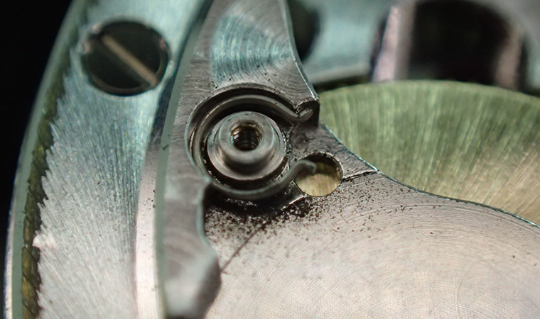 剣回し時の違和感の原因は、コテツ車ポストの摩耗によるものでした。こちらが摩耗してしまうと修理がとても大変になります。メンテナンス実施者からみるとCal.3135の泣き所と言えるかもしれません。